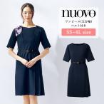事務服 ワンピース レディース 制服 nuovo 秋冬 春 FOLK 五分丈袖 ベルト付き ワンピース 医療事務 オフィス 冠婚葬祭 大きいサイズ おうちで洗える 送料無料
