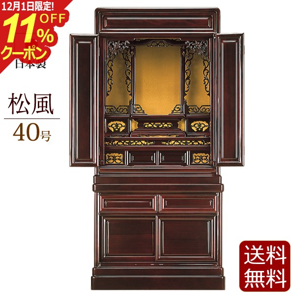 [12/1限定11%OFFクーポン]【 送料無料 】 唐木仏壇 床置き 台付き仏壇 松風 40号 【保証付き】 ( ミニ仏壇 小型仏壇 台 仏壇台 仏壇セット ミニ コンパクト 法事 仏壇仏具 お仏壇 法要 仏壇用品 台付 仏具用品 仏事 床置き仏壇 上下セット ダルマ 下台付き) 新型
