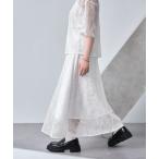 スカート フラワーレースシアーフレアスカート(ウエストゴム)