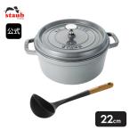 ストウブ ピコ ココット ラウンド 22cm グレー & スープレードル 2点セット