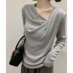 ニット セーター 「26年春夏新作」カシュクールドレープ アシメネックニットトップス 鎖骨見せ レディース