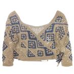 【中古】未使用 23ss JUN MIKAMI ジュンミカミ かぎ針 クロシェ カシュクール リネン カーディガン ニット 七分袖 茶 ブラウン ネイビー レディース Luxs ブランド古着のリュクス