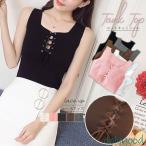 キャミソール レースアップニットキャミソールレディース