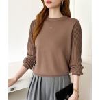 ニット セーター シンプルなのに印象的。 クルーネックプリーツスリーブニット ニット プリーツ袖 クルーネック オフィスカジュアル きれいめ 春ニット