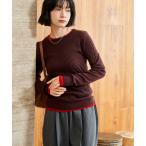 【限定!15%OFFクーポンで2,974円】クルーネックフレアスリーブ配色リブニットトップス レディース 秋 冬 春 リエディ トップス ニット 配色ニット クルーネック セーター 細見え リブ オフィスカジュアル オフィス 通勤 レイヤード[mb]