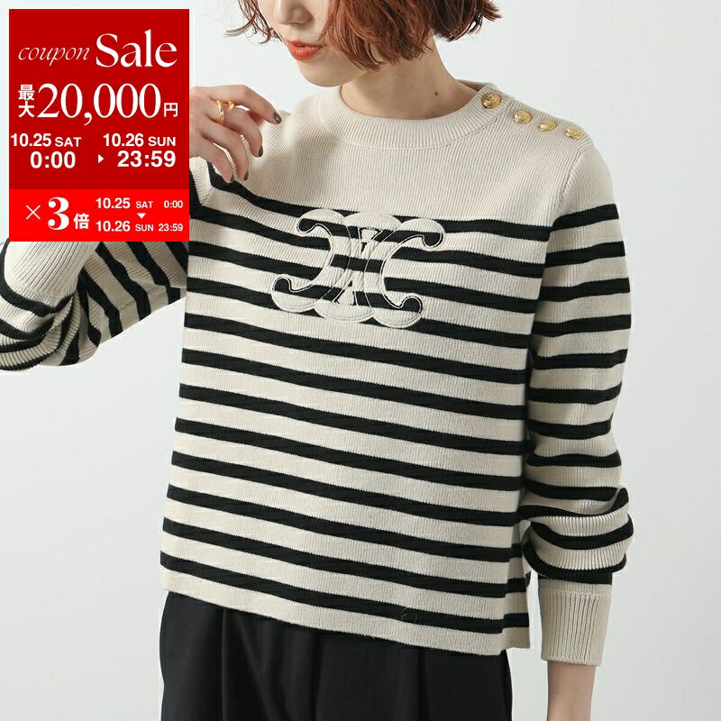 【10/25-26限定・最大2万円OFFクーポン配布中】CELINE セリーヌ セーター RY0CC592S.60EB レディース 長袖 ニット ボーダー トリオンフ カシミア ウール クルーネック ベージュ他【dc_kikaku】