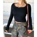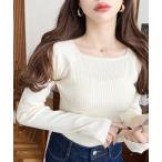 ニット セーター スクエアネックリブニット長袖トップス レディース
