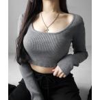 ニット セーター スクエアネックリブショート丈ニットトップス レディース