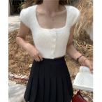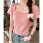 tシャツ サマーニットショート丈 トップス スクエアネック レディース