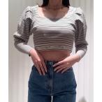 ニット セーター スクエアネック5分袖ボーダーニット レディース
