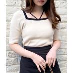 ニット セーター バイカラースクエアネックフェザーニットトップス レディース