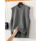 女性用テキスタイルニットベスト - ノースリーブ、クルーネック、サイドベンツ、カジュアルファッションジャケット - 無地、オールシーズン対応