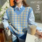 ベスト ニット ノースリーブ レディース 女性 婦人 トップス 大きいサイズ ゆったり 千鳥格子 Vネック おしゃれ かわいい リブ編み ガーリー 着