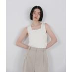 タンクトップ ノースリーブ スクエアネックニットタンクトップ レディース