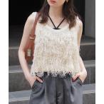 ニット セーター ラメメッシュノースリーブニット (セットアップ可) レディース