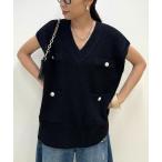 ベスト ジレ ゴールド釦ボクシーニットベスト レディース