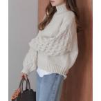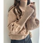 ニット セーター 「至福のカヌレニット」ボリュームスリーブプチハイネックニットプルオーバー レディース