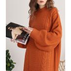 ニット セーター ハイネックケーブルニットプルオーバー レディース