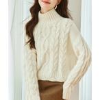 ニット セーター ケーブル編み×ハイネックニットトップス レディース