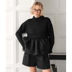ニット セーター リブ切り替えハイネックニットプルオーバー レディース