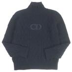 極美品□DIOR ディオール オム 113M616AT183 カシミヤ CDロゴ刺繍 ハイネック ケーブルニット セーター ネイビー M イタリア製 正規品