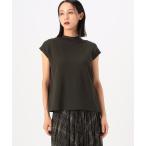 ニット セーター ストレッチコットン鹿の子編み ハイネックフレンチスリーブニット レディース