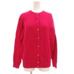 未使用品 ヨークランド YORKLAND タグ付き カーディガン ウール 9AR ピンク系 ケーブルニット ラウンドネック 長袖 /ML ■ECF001