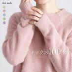 ★27時間限定11%OFFクーポン★ブルーフォックス100%ラウンドネックニット 5色 M-L 長袖 レディースファッション トップス ニット ラウンドネック クルーネック フォックス100% ブルーフォックス 体型カバー ストレッチ 春秋冬 6164 【送料無料】