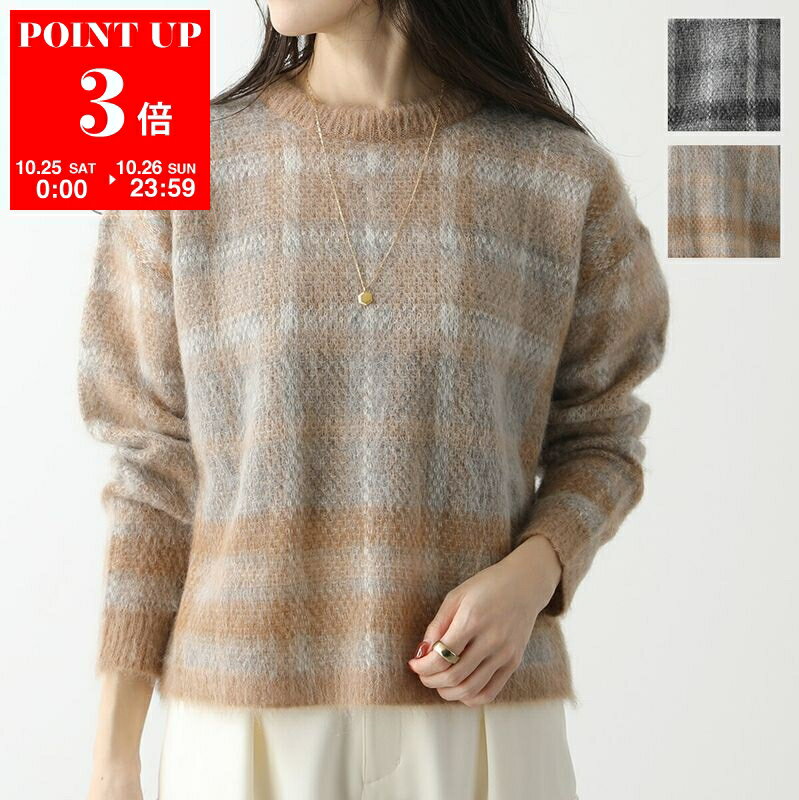 MAX MARA Studio マックスマーラ ステュディオ ニット FEDRA フェドラ レディース モヘヤ アルパカ タータンチェック プルオーバー 長袖 ラウンドネック カラー2色