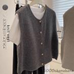ニット ベスト ジレ ラウンドネック ボタン留め 丸みボタン ニットベスト ショート丈 秋冬 シンプル ニットジレ 冬 トップス インナー 前開き 重ね着 レイヤー