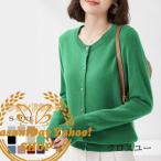 カーディガン レディース サマーニット ラウンドネック クルーネック ニット オフィス 長袖