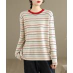 ニット セーター ボーダー柄ラウンドネックニットトップス レディース