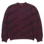 極美△BALENCIAGA バレンシアガ 534493 ALL OVER LOGO ウール ラウンドネック ロングスリーブ ニット セーター ボルドー M 正規品 メンズ