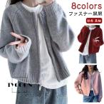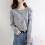 カーディガン ソリッドカラー ラウンドネック 長袖 ニット カーディガン レディース