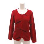 ピンクハウス PINK HOUSE ニットカーディガン ベルト付き ラウンドネック 総柄 赤 レッド 黒 ブラック /YJ ■GY61 レディース