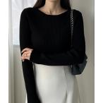 ニット セーター 華奢見え叶える程よいフィット感。配色メロウリブニットトップス(長袖) レディース