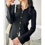 カーディガン 新色追加「選べるサイズ」ポロ衿 リブニットカーディガン/2WAY レディース