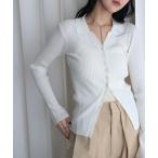 カーディガン ポロ襟付きVネックリブニットカーディガン / 前ボタンポロカーディガン レディース