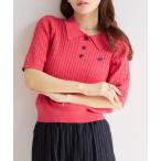 ニット セーター 「Bevery Hills Polo Club/ビバリーヒルズ ポロクラブ」ワンポイント刺繍 ケーブル編み リブ半袖ポロニット