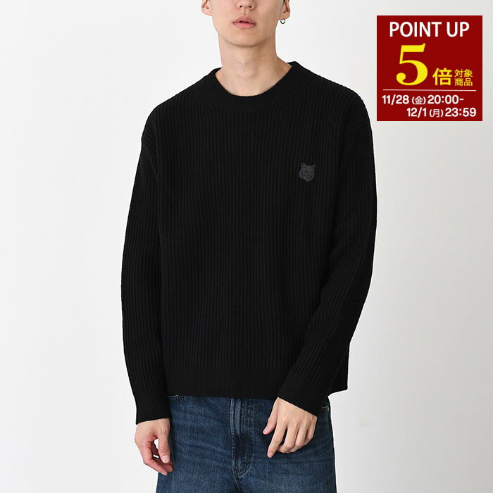 【P5倍対象商品】MAISON KITSUNE メゾン キツネ ニット セーター トップス フォックスヘッド ウール リブ ジャンパー PM00811KT1149 メンズ ブラック ホワイト 秋 冬 クルーネック 長袖