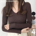 ニット カットソー レディース リブニット トップス セーター 長袖 リブセーター Vネック 長袖ニット プルオーバー インナー おしゃれ かわいい ストレッチ