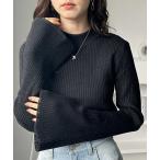 ニット セーター シアーネックリブニットプルオーバー レディース