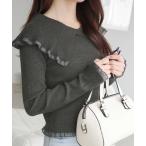 ニット セーター 「mily bilet」着るだけでこなれ感。オーガンジーフリル襟リブニット レディース