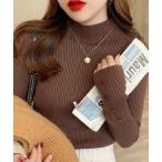ニット ハイネック レディース リブニット 長袖 トップス セーター 無地 カジュアル トータルネック シンプル