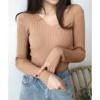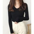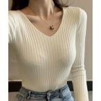 ニット セーター タイト リブニット vネック きれいめ レディース