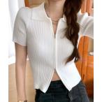 ニット セーター ヘンリーネック半袖リブニット レディース