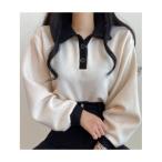 ニット セーター 配色レイヤード風ボリュームスリーブ リブニットプルオーバー レディース