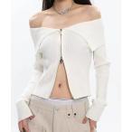 ニット セーター ビッグカラーオフショルニット/ジップアップリブニット レディース