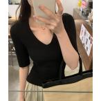 【SALE/40%OFF】送料無料 Vネックリブニット 長袖トップス 上品 秋 春 冬 伸縮 リブ ニット トップス シンプル 定番 着回し かわいい Vネック 柔らか ストレッチ タイト スリム SneepDip 無地 ニットトップ Y2K 韓国ファッション カジュアル フェミカジ レイヤード 大人 長袖