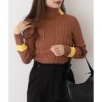 ニット セーター EGLANTINE ランダムリブ配色タートルネックニット レディース